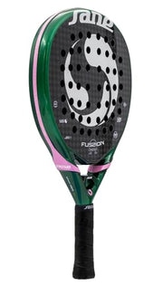 The Fussion Omega is a versatile racquet designed for players looking for a balanced combination of control and power. With its oversized round hybrid shape, this paddle offers multifunctional performance that accommodates a variety of play styles, providing ample sweet spot and excellent manageability. Made with 12K carbon and equipped with PRO CTRL rubber, the Fussion Omega offers a medium-hard feel and consistent ball output, ideal for maintaining control at all times without sacrificing power on hits. Its EXA-HOLES perforation pattern optimizes sweet spot distribution, ensuring precision and performance on every hit. In addition, the Fussion Omega incorporates a novel connecting bridge in the heart of the blade, designed to reduce vibrations, providing a more comfortable and stable hitting feeling. The glossy finish surface adds a sophisticated touch and facilitates excellent aerodynamics. With an adjustable weight between 355 and 375 grams and a medium-low balance, this racquet is ideal for those players looking for a combination of control and comfort on every play. The Fussion Omega is perfect for those looking for a paddle that responds to their game with precision and control, providing a comfortable hitting experience and excellent ball output to suit any situation on the court.