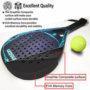 • ??Excellent Quality ??The Graphite Composite surface will make your racket surface more durable, so that you can fully output your energy in any situation. EVA Memory Core provides excellent durability and stability, gain more control and more stable performance for the best shock absorption of the racket.