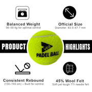 VEA Match Balls for Padel ??Pressurized, Durable Felt ??Long-Lasting Bounce ??Pack of 3 Ball - 1 Tube for Training and Match Use