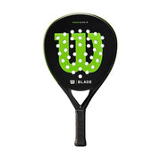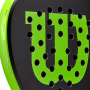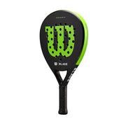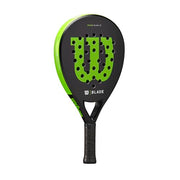 Wilson Blade Junior v2 padel racket, Ideal for the legends of tomorrow, with more vigour in every stroke, Optimal for young players thanks to its shorter length and reduced thickness, improved power transmission and ball grip thanks to Sharp Hole technology, Fibreglass material for a balanced blend of stability and responsiveness, Sublime Grip with blend of softness, grip and comfort with improved moisture management, Low density EVA foam core for stable performance with a comfortable soft feel, Convenient strap on the handle for more safety, Contents: 1x Wilson Blade Junior v2 Padel Racket, Colour: Black/Neon Green, WR115611U0