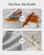 Durable Vegan Leather for Long-Lasting Use-Our baby play mat surface is crafted from high-quality vegan leather, offering superior durability compared to traditional XPE mats. The premium surface is designed to resist wear and tear from everyday use, maintaining its stylish appearance. This mat provides a reliable play area that stands the test of time