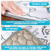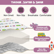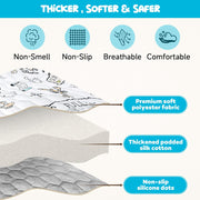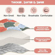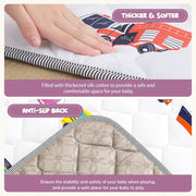 Thicker and softer: Unlike conventional baby play mats, our crawling mat is filled with thick silk cotton and has a thickened surface that provides your baby with extra padding and comfort. BPA free, odorless, non-toxic, soft, non-slip, perfect for newborns and toddlers.