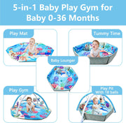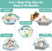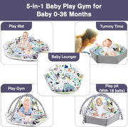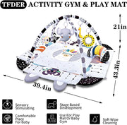 TFDER 7-in-1 Baby Play Gym, Infant Non-Slip Activity Blanket, Crawling Mat with Play Arch and Sensory Toys,Baby Toys 0+ Months,Black and White