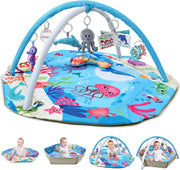 Oversized Baby Activity Mat:The play mat measures 43.31*43.31*16.93 inches. Can be quickly installed or removed. It can be folded and packed for easy carrying. The play mat can also be used outdoors. The play mat is machine washable and can be easily wiped clean.