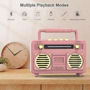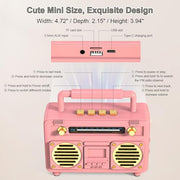 Azonee Mini Retro Bluetooth Speaker, Portable Bluetooth Stereo Speaker, Small Vintage Wireless Speaker Support TF Card - USB, for Travel, Home, Beach, Kitchen for Android/iOS Devices (Pink)