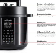 Nutricook Smart Pot 2 Rice Cooker, Steamer, Sauté Pot, Yogurt Maker & More,9 In 1 Electric Pressure Cooker, Slow Cooker,6 Liters, 12 Smart Programs With New Smart Lid