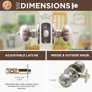 Copper Creek Satin Stainless Door Knobs - Round Colonial Knob with Privacy Locking Function for Home Improvement, 1 Pack - Fits All Standard Doors - Locking Door Knob for Bedroom and Bathroom Use