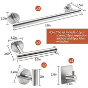 FGBNM Bathroom Hardware Set, 10pcs Bathroom Hardware Set, Brushed Nickel Bath Hardware Set Including 16" Hand Towel Bars, Toilet Paper Holders, 3 Multifunctional Robe Hooks (10pcs, Brushed Nickel)
