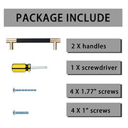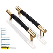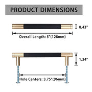 GTKHAAPPY Cabinet Handles 2-Pack 5'' Modern Black & Gold Aluminum Cabinet Pulls Knurled Diamond Pattern Drawer Hardware for Kitchen Cupboard Door and Bathroom (3.75" Hole Center)