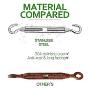 - QUALITY GUARANTEED: The turnbuckle is made of 304 stainless steel, corrosion-resistant, durable, structurally stable, polished and sanded without burrs, not easy to rust and oxidize, can be used for a long time.