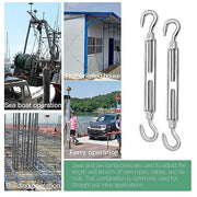 - APPLICATIONS: Will not rust even when used in wet environments or fresh water. Stainless steel turnbuckle is suitable for a variety of scenarios to use, self-driving tours, tensioning wire rope, chain, other ropes, drying clothes. Such as clothesline, porch rope, tent rope, lanyard, fixed seats or paint exhibition display.