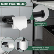 ZERIFAM Bathroom Towel Holder - 4-Pieces Towel Rack Bathroom,Bathroom Hardware Set No Need To Drill Holes,Includes Toilet Paper Holder, Clothes Hook, And Two Towel Racks (BLACK)
