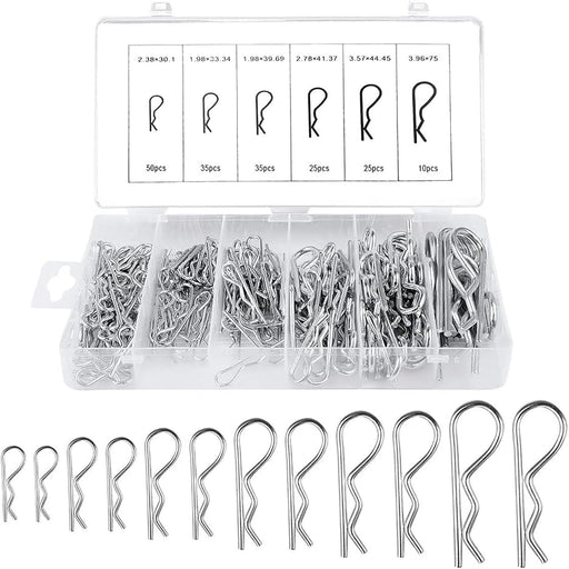 THE WHITE SHOP 180Pcs Cotter Pins Assortment Kit,Hair Pin R Clips,Heavy Duty R Clips Retaining Pins,Stainless Steel Locking Cotter Hitch Pins for Trucks Tow Bar Tractors Mower Carts.