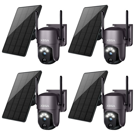 View full detailsXega 4 Pack Security Camera Wireless Outdoor 2K 360° PTZ Camera Solar Security Cameras 2.4G WiFi Video Surveillance w/Spotlight & Siren, Color Night Vision, AI Motion Detection, 2-Way Talk, IP66