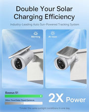 Baseus Solar Security Camera Outdoor, S1 Wireless Solocam, Forever Power with Auto Sunlight-Tracking System, 2K Clarity, 145° FOV, Built-in 8GB Local Storage and Color Night Vision, No Monthly Fee