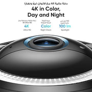 - 4K in Color, Day and Night : The color 4K camera gives you the clarity to identify a license plate 30 feet (10 meters) away. Shine a light on your surroundings with the 100-lumen spotlight to continue seeing colorful details up to 26 feet (8 meters) away, all through the night.