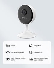 EZVIZ C1C-B WiFi Security Camera, Indoor Camera, 1080p Home Monitor Camera with 12m Night Vision, Two Way Talk, Wide Angle Lens, Sounds Alert, Sleep Mode, Motion Detection, Supports MicroSD Card