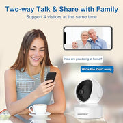 - 4MP HD Resolution & Two-Way Communication: Experience 2K clarity with our 4MP HD indoor WiFi camera. Offering 348° pan, 70° tilt, and 5x zoom, it provides comprehensive coverage for pets, children, and home security. The two-way communication feature allows you to stay connected, easing separation anxiety and enabling real-time interaction with loved ones