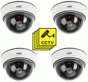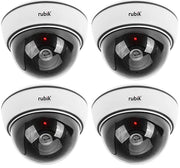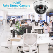 Rubik 4pc Dummy CCTV Camera with Flashing LED Light and CCTV Sticker Sign, Fake Surveillance Camera Security Indoor Dome Camera with LED Light