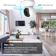 Upgrade your home security with the Tapoo Pan/Tilt 1080p HD Security Camera, designed to give you complete peace of mind—anytime, anywhere. With full 360° rotational coverage, crystal-clear 1080p Full HD video, and intelligent features like motion detection, night vision, and two-way audio, this smart Wi-Fi camera Works with Alexa & Google Home ensures you never miss a moment. Whether you're monitoring pets, checking in on loved ones, or keeping an eye on your property, the Tapoo Smart Camera with App Control gives you powerful, user-friendly control right from your smartphone. Compatible with Alexa and Google Assistant, it's the perfect addition to any smart home setup.