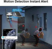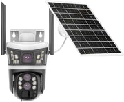 Experience superior surveillance with this advanced V380 Pro solar-powered security camera system. Featuring a triple-lens design with full HD CMOS wide-angle capability, this camera offers exceptional coverage with its impressive 355-degree horizontal pan and 90-degree vertical tilt range. The 10X optical zoom ensures you capture detailed footage from a distance. Equipped with black light night vision technology, it delivers crystal-clear, full-colour imaging even in extremely dark conditions. The camera supports two-way audio communication and includes motion detection with picture push notifications. With IP66 waterproof rating, it's suitable for both indoor and outdoor installation. The system includes built-in siren and flood light features for enhanced security. Storage options are flexible with support for up to 128GB micro SD cards and cloud storage capabilities. Monitor your property remotely through the V380 Pro Application, which enables convenient P2P connection and remote control functionality. The integrated solar panel ensures continuous operation while the 4G connectivity provides reliable transmission of surveillance footage.