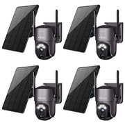 Xega 4 Pack Security Camera Wireless Outdoor 2K 360° PTZ Camera Solar Security Cameras 2.4G WiFi Video Surveillance w/Spotlight & Siren, Color Night Vision, AI Motion Detection, 2-Way Talk, IP66