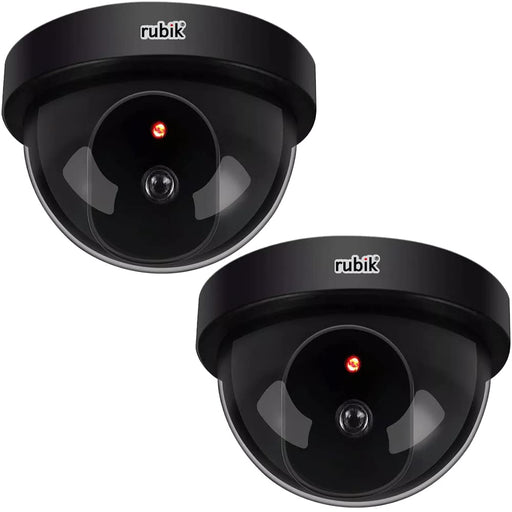Rubik 2pcs Dummy Security Cameras with Flashing LED Light Fake CCTV Surveillance Simulation Camera Security Indoor Dome Camera with LED Light (Basic, Black)