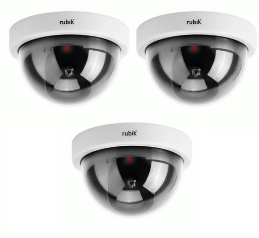 Rubik 3pc Dummy CCTV Dome Camera with Red LED Light, Fake Surveillance Simulation Camera Security Indoor Dome Camera with LED Light (White)