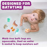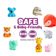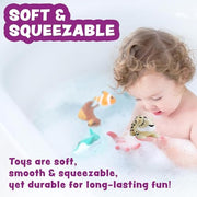 Our cute animals bath toys are soft to the touch, squeezable, and have cute features. Toys float at the surface and are easy to gather and clean after bath time.