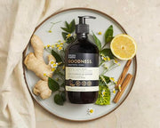 Goodness by Baylis & Harding - treat your hands to the 500ml Hand wash with organic extracts of Orange & Black Pepper. This fragrance makes for a perfectly matched compilation of rich ginger and lemongrass, blended with Black Pepper, Citrus and Bergamot for added freshness. With nutmeg and cinnamon spicy undertones, this sensory explosion is generously enriched by ten essential oils; Lemongrass, Lemon, Lime, Orange, Eucalyptus, Nutmeg, Patchouli, Cedarwood, Cinnamon, Geranium.