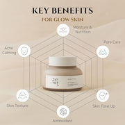 Discover the power of rice and honey with our new wash-off mask, the Ground Rice and Honey Glow Mask. This mask harnesses the power of upcycled makgeolli lees, a byproduct of traditional Korean rice wine, to deliver potent skin benefits. Enriched with natural rice hull powder and 5% honey, it provides deep hydration, improves skin texture, and helps soothe inflammatory skin conditions like acne.