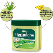 Dabur Herbolene Aloe Petroleum Jelly is a unique herbal-based 100% pure jelly formula that is fortified with the goodness of aloe vera, vaseline and is rich in Vitamin E to effectively moisturise, rejuvenate and heal extremely dry and damaged skin, soothe chapped lips, smoothen knees and elbows, heal cracked feet and also soothe skin after exposure to the sun. Dabur Herbolene’s natural formula penetrates deep into the skin cells to provide intense nourishment for soft, supple, hydrated skin and to treat dry patches on your face and body. Its regular use nourishes and protects skin from harsh weather conditions and helps heal cuts and cracks. Dabur Herbolene is a safe emollient to use on any part of the body.