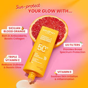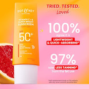 Enjoy total sun protection for glowing, even-toned skin with Dot & Key Vitamin C+E Super Bright Sunscreen with SPF 50 & PA+++ . Featuring water-light, quick-absorbing texture, it is infused with Vitamin C, Vitamin E, Sicilian Blood Orange & UV Filters to reduce dullness, dark spots & pigmentation while providing sun protection against UVA & UVB rays for even-toned, glowing & healthy skin. Zero white cast with an invisible finish on all skin tones, we bet it's the Sunscreen You'll Love to Wear!