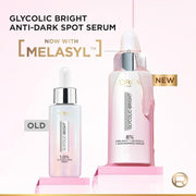 Glycolic Bright Melasyl Serum - Anti Dark Spot Serum. Formulated with 8% [Melasyl + Niacinamide + Glycolic Acid]. Melasyl, a patented ingredient made by L’Oréal Paris Store, is our strongest brightening active ever. Stronger than the top 5 brightening ingredients. Reduces dark spots by 86% even the most stubborn of spots. Safe for sensitive skin and for daily use.