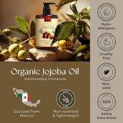 • Multi-Purpose Moisturizer: Lightweight and fast-absorbing, this organic jojoba oil hydrates and softens face, hair, body, nails, and beards. It’s ideal for nourishing routines, leaving skin and hair naturally radiant.