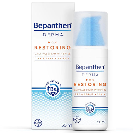 Bepanthen Derma Restoring Daily Moisturizer Face Cream with SPF 25, 50 ml, Moisturizer Face Care, for Sensitive and Dry Skin