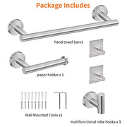 5 Pieces Wall Mounted SUS304 Stainless Steel Bathroom Towel Rack 40cm 16" Towel Rails Towel Holder, Toilet Paper Holder and Robe Hooks Bathroom Accessories Set (Bathroom Set, Brushed Finish Silver)
