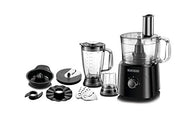 BLACK+DECKER 5-in-1 Food Processor, 750W Power, 2L Processing Bowl, 1.8L Blender Jar with Stainless Steel Blades, 34 Functions for Chopping, Slicing, Shredding, Compact Design, Black - FX775-B5
