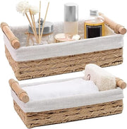 - ✨ Elegant & Versatile Design: Crafted with 🌿 natural woven seagrass and complemented by a 🏡 soft linen lining, these baskets add a touch of rustic charm and sophistication to any space—perfect for bathrooms, bedrooms, or living rooms.