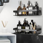 INFOSUN 2PCS Bathroom Shower Shelf, No Drilling Shower Shelf for Bathroom Storage, Can be wall-mounted without holes for Bathroom, Toilet, Shower, kitchen Accessories, with 1 Soap Dishes(2Pack,Black)