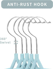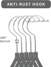 [Velvet Texture]: Full of high quality flocked velvet on hangers holds your children clothes tightly preventing the clothes from slipping. A anti-rust chromed finish and 360 degree swivel hook on the children hangers helps you move the hangers easily.