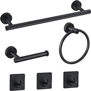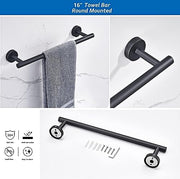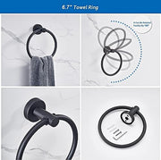 MIXDE 6 PCS Bathroom Hardware Set, MIXDE Stainless Steel Round Wall Mounted - Includes 16" Hand Towel Bar, Towel Ring,Toilet Paper Holder, 3 Robe Towel Hooks,Bathroom Accessories Kit(Matte Black)