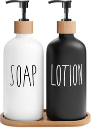 MOMEEMO Soap Dispenser Bathroom Set with Hand Soap & Lotion Dispenser, Suitable for Farmhouse Bathroom Decor, Black and White