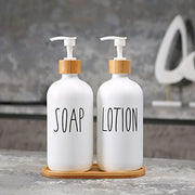 MOMEEMO White Soap Dispenser Bathroom Set, Bathroom Soap Dispenser Set with Glass Soap Dispenser, Bamboo Pumps & Tray. Soap and Lotion Dispenser Set Suitable for Bathroom Accessories Decor. (White)