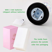 - LED color light string+high silicone glass+plastic:The gold foil rose night light is made of LED small colored lights and gold foil roses, with an external high silicone glass cover and a plastic base. You don't have to worry about being too hot, it is non hazardous and there is no risk of hazardous material leakage.The glass rose is wrapped around an LED Strip tree lamp, Powered by 3 AAA batteries(not included)