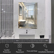 MUMOO BEAR Bathroom Mirror Vanity Makeup Mirror Wall Mounted Frameless Rectangular Mirror for Bathroom Vanity Bedroom Dressing Table Vertical or Horizontal Hanging (70 * 90cm, Clear)