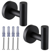 Towel Coat Hook SUS304 Stainless Steel Wall-Mounted Round Kitchen Heavy Bathroom Door Anti-Rust Coat Hook 2 Pack Matte Black