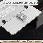 OUGIC Ergonomics Desk Extender Tray, 25.2"x9.5" Punch-Free Clamp on, Foldable Keyboard Drawer Tray, Table Mount Arm Wrist Rest Shelf, Computer Elbow Arm Support