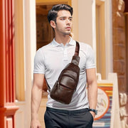 SVNXI Genuine Leather Sling Crossbody Bag,Fashion Chest,Casual Shoulder Bag for Men Women Work Travel Cycling
