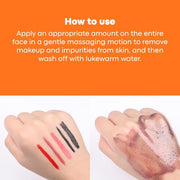 - Gently massage onto dry skin, focusing on areas with heavy makeup and/or buildup to help dissolve skin impurities.